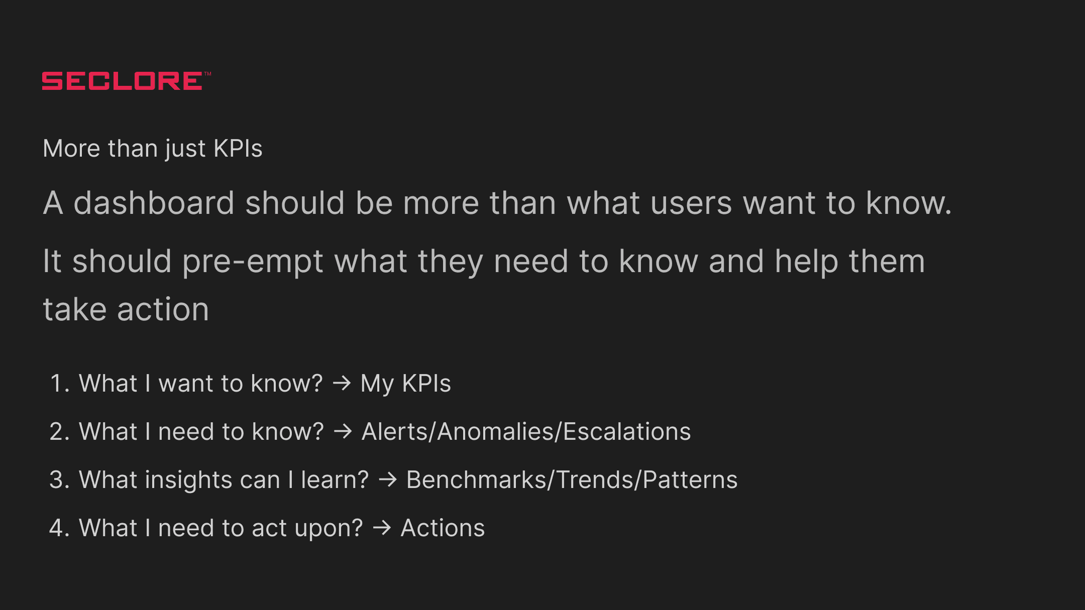 + Needs dashboards for effective executive communication.